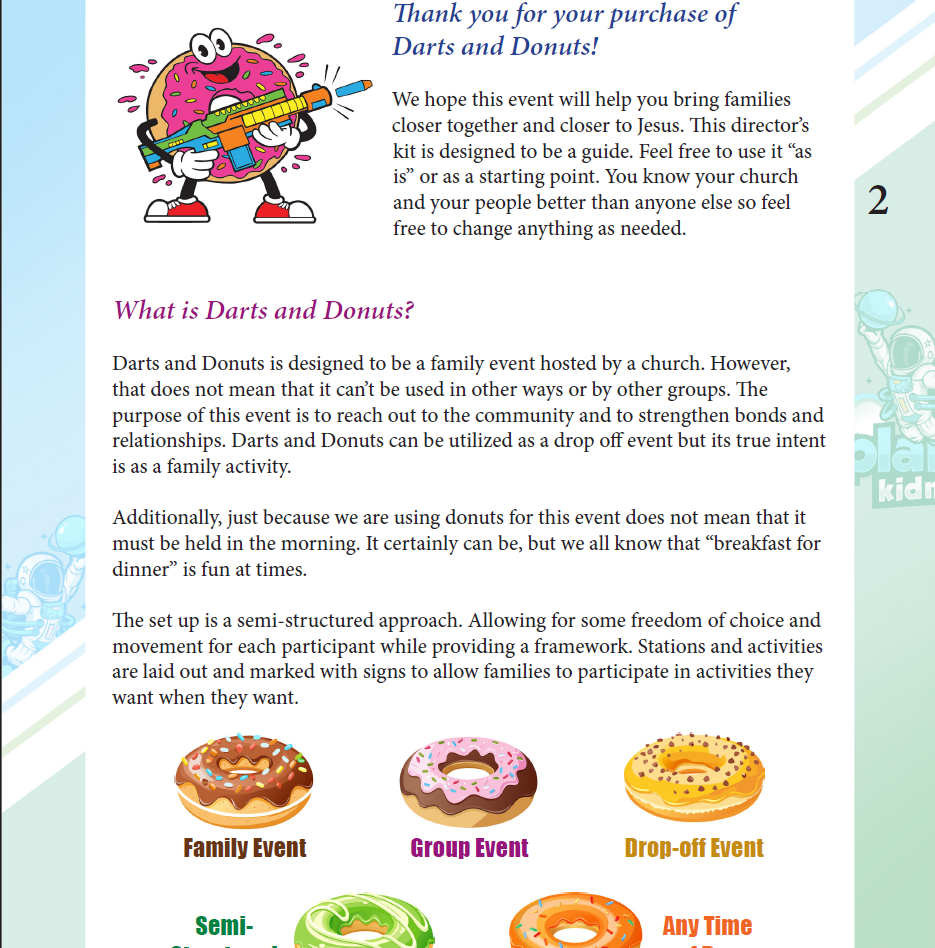 Whether you’re planning a church family night, youth group gathering, or community outreach, Darts & Donuts/Darts & Dining is your go-to kit for creating memories that stick.